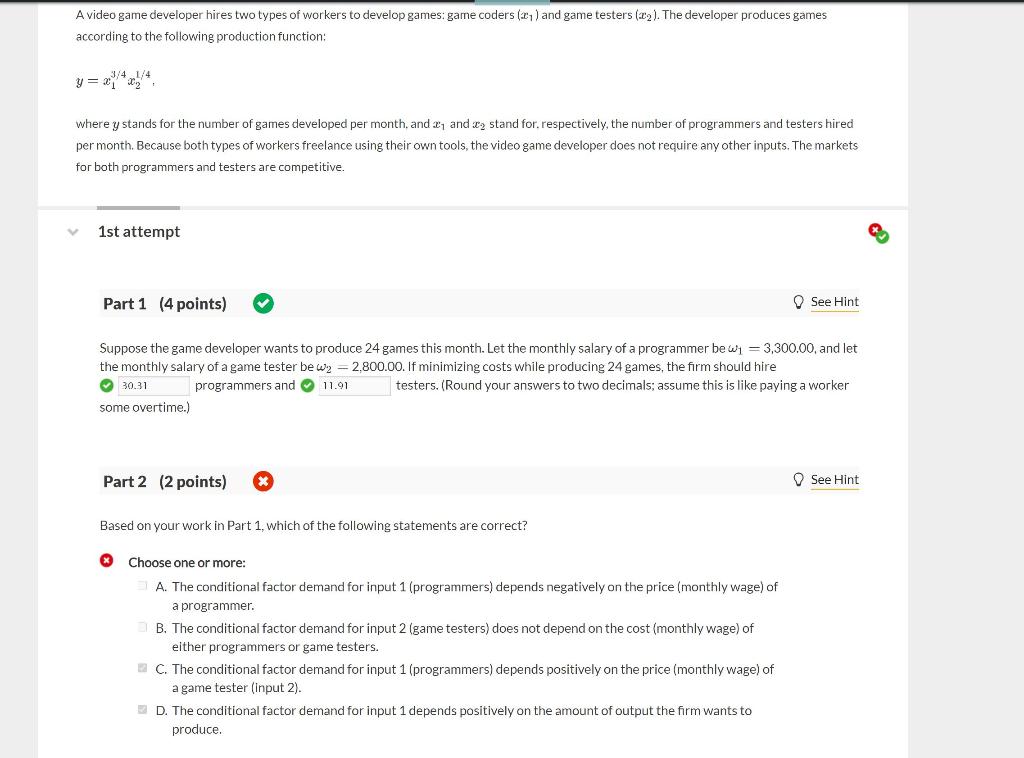 Solved A Video Game Developer Hires Two Types Of Workers To Chegg Com